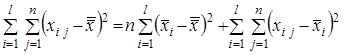 Повну суму квадратів відхилень усіх значень від загальної середньої, при обчисленні якої спільно врахуються факторна та випадкова компоненти, можна розкласти на суму двох складових, що подають ці фактори роздільно