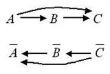 Нетрудно убедиться, что к данному структурному классу относится также и система, насыщенность которой мы только что проверили методом перебора. К этому классу относятся почти все примеры полисиллогизмов, приводимые в учебниках по логике. Вместе с тем, этот класс является всего лишь частным случаем E‑структур и соответствующих им рассуждений, т.е. возможны классы E-структур, у которых схемы будут более запутанными. Далее будут рассмотрены E‑структуры, для которых проверка насыщенности не является такой простой процедурой. Приведем определения и соотношения, которые после предшествовавшего анализа будут более понятными.