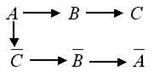 . Вначале воспроизведем диаграмму Хассе нашей исходной системы (рис. 3) и добавим к этой системе первое проверяемое суждение (рис. 4). Теперь достаточно посмотреть на рисунок, чтобы убедиться, что новая система содержит коллизию парадокса A®