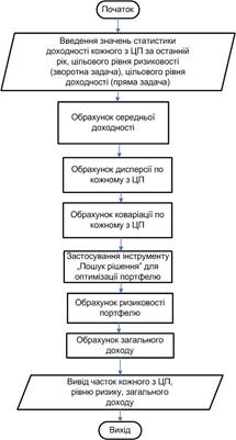 Рисунок 2.1 – Блок-схема алгоритму вирішення задачі оптимізації портфелю цінних паперів