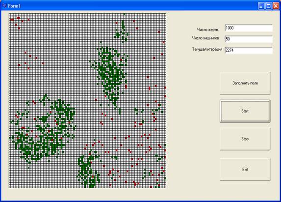 Для накопления статистических данных программа записывает численности жертв и хищников в следующие файлы D:\\Hicnic и D:\\Gertva.