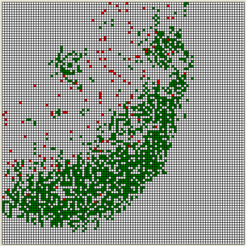 В соответствии с вышеуказанными предположениями была построена модель, которая даёт визуальное представление о происходящем взаимодействии хищников и жертв. В данной модели можно менять ряд параметров (к сожалению, только при компиляции):
