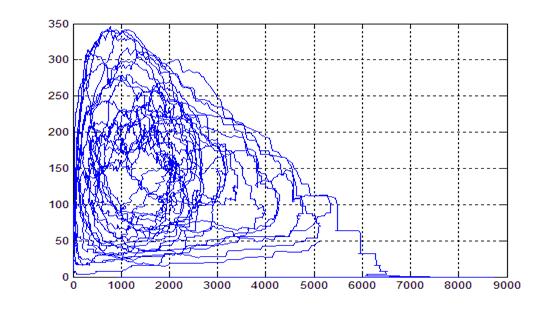 Мы получили логистическую кривую. Данный результат можно считать «хорошим знаком». Это говорит о том, что в нашей имитационной модели численность жертв ,при отсутствии хищников, хорошо согласуется с теорией (логистической моделью).