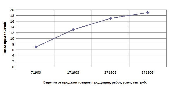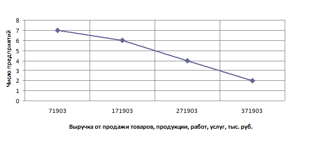 Рис.1.2 Полигон распределения предприятий по величине выручки