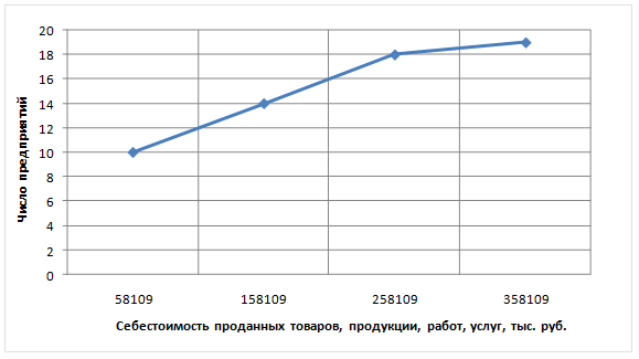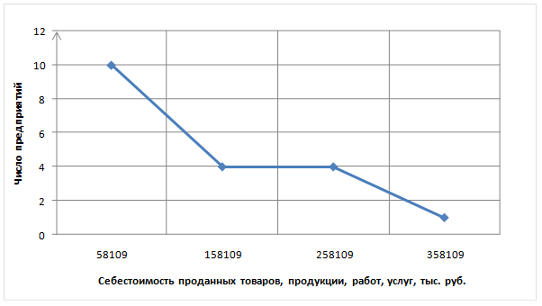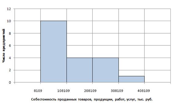 Распределение предприятий по величине себестоимости проданных товаров, продукции, работ, услуг