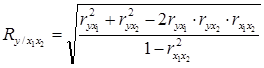 В данной работе множественный коэффициент корреляции был вычислен по формуле (2.4):