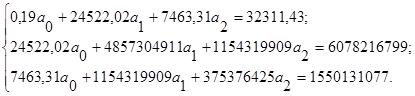 Отсюда: a0 = -2132,16; a1 = 1,005433; a2 =1,080124;