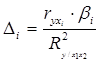 С помощью частных коэффициентов эластичности и с помощью бета – коэффициентов можно проранжировать факторы по степени их влияния на зависимую переменную, то есть сопоставить их между собой по величине этого влияния. Но с помощью бета – коэффициентов нельзя непосредственно оценить долю влияния каждого фактора в суммарном влиянии всех факторов. Для этой цели используются дельта – коэффициенты (2.12):