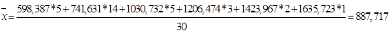 (944,784+1080,645+970,109+1039,449+958,673) /5=1030,732