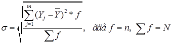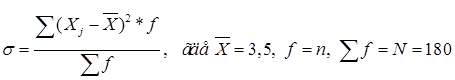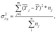 3) Используя данные перестроенной комбинационной таблицы, определить по результативному межгрупповую дисперсию, среднеквадратическое отклонение и коэффициент вариации.
