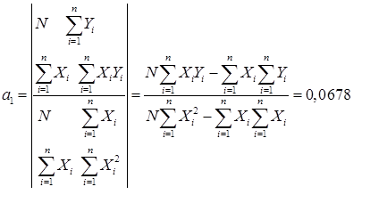 Расчет параметров уравнения прямой представлен в таблице 12.