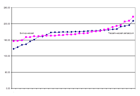 2) На основе исчисленных групповых средних величин построить эмпирический график зависимости результативного признака у от факторного признака х, т.е. фактическую линию регрессии между ними.