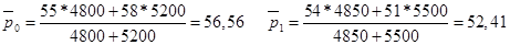 где р11 ,р12 - отчетная себестоимость продукции по 1-му и 2-му предприятиям;