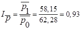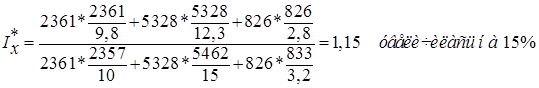 Рассчитанный выше индекс показывает, какого было изменение средней себестоимости продукции по двум предприятиям, если бы удельный вес выработанной продукции на предприятиях в базисном периоде был таким же, как и в отчетном. То есть себестоимость продукции А снизилась бы на 12%, продукции В - на 7% и продукции Г - на 7%.