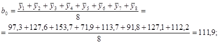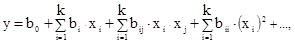 Модель строят по результатам экспериментов, т. е. определяют выборочные оценки коэффициентов b0 , bi , bij , bii :