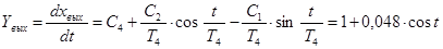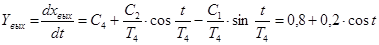 х вых =х вых 2 =exp (−σ∙t 2 )∙[C 1 ∙cos (t 2 /T 5 )+C 2 ∙sin (t 2 /T 5 )] + C 3 + C 4 ∙t 2 (у.е.)…..…(17.4),