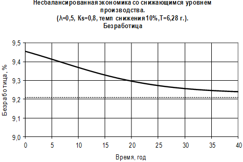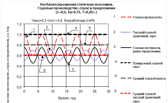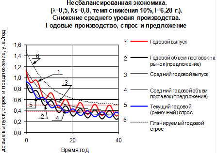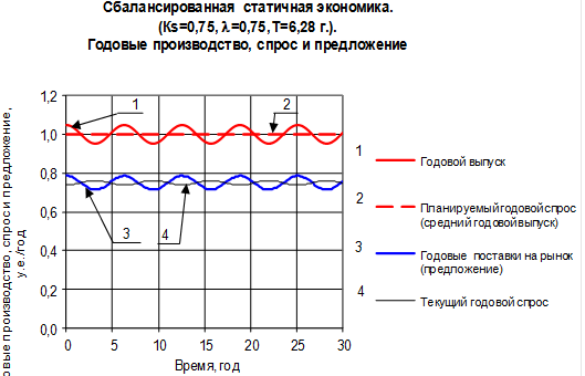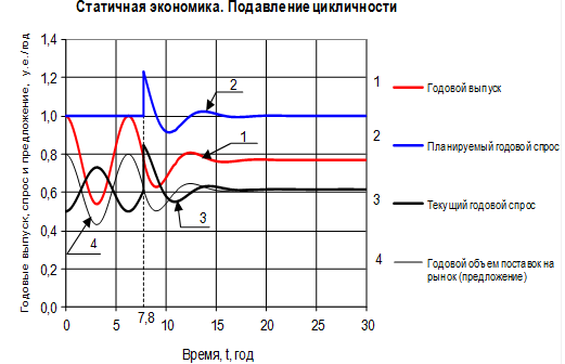 На рис.12 представлен один из возможных способов целенаправленного подавления цикличности на примере статичной экономики со следующими параметрами и начальными условиями: