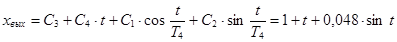 х вх = х 01 + b∙t − b 1 ∙sin t /T 5 = t – 0,09∙sin(2∙t )… (у.е.)….………….…...(16),