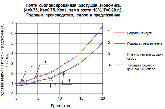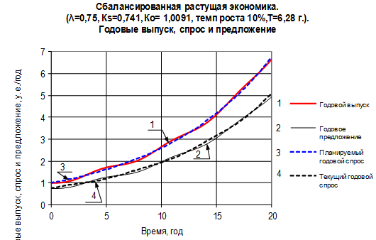 (у.е./год) – значение годового выпуска при t