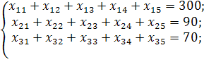 Усі інші заповнені клітинки першої таблиці, які не входили до циклу, переписуємо у другу таблицю без змін. Кількість заповнених клітинок у новій таблиці також має відповідати умові невиродженості плану, тобто дорівнювати (n + m – 1).