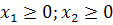 Оскільки, кількість виробів є величина невід'ємна, то додатково повинні виконуватись ще нерівності: х1 > 0, х2 > 0.