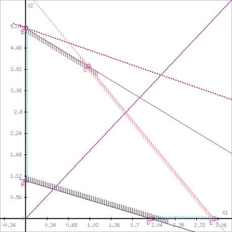 Перетином півплощини буде область, яка представляє собою багатокутник, координати точок якого задовольняють умові нерівностей системи обмежень задачі.