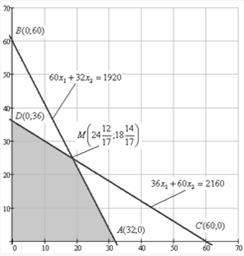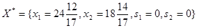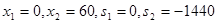 Это базисное решение означает, что изделие А не производится, изделие В производится в количестве 60 ед., время изготовления продукции на линии 1 используется полностью, для производства на линии 2 не хватает 1440 минут работы. Это базисное решение не является допустимым.