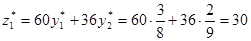 определяет стоимость 60 минут и 36 минут, затраченных на изготовление единицы изделия А в теневых ценах, а выражение