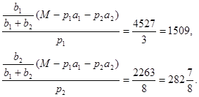 3. Оценим влияние на спрос изменения дохода обоих товаров. Найдём реакцию спроса на изменение дохода на 1 денежную единицу. Частные производные по доходу