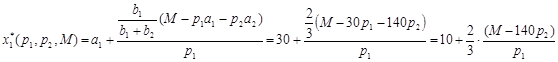 3. Найти спрос на оба товара при увеличении дохода на 30 денежных единиц и при уменьшении дохода на 60 денежных единиц.