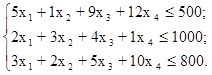 5х1+1х2 + 9х3+ 12х4≤ 500