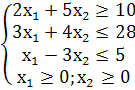 3х1+2х2 + 5х3+ 10х4≤ 800