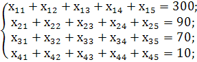 Усі інші заповнені клітинки першої таблиці, які не входили до циклу, переписуємо у другу таблицю без змін. Кількість заповнених клітинок у новій таблиці також має відповідати умові невиродженості плану, тобто дорівнювати (n + m – 1).