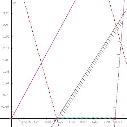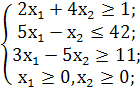 Оскільки, кількість товарів є величина невід'ємна, то додатково повинні виконуватись ще нерівності: х1> 0, х2> 0.