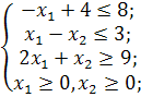 Оскільки, кількість виробів є величина невід'ємна, то додатково повинні виконуватись ще нерівності: х1 > 0, х2 >0.