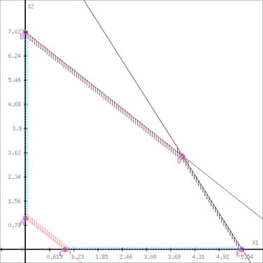 Перетином півплощини буде область, яка представляє собою багатокутник, координати точок якого задовольняють умові нерівностей системи обмежень задачі.