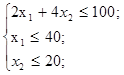 2х1+4х2≤100