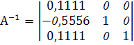 | 4 | х1 | 5 | 1 | 1,11 | -0,1111 | 0 | 0 | 0,1111 |