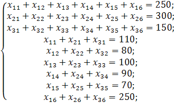 Для побудови першого опорного плану систему нерівностей приведемо до системи рівнянь шляхом введення додаткових змінних.
