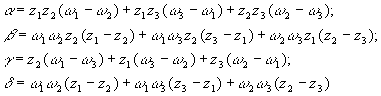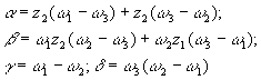 Таким образом, при параметрическом представлении функций принадлежности задача описания перехода от одного терма t: (z1, z2, z3) к другому tI: (ω1, ω2, ω3) решается непосредственным подсчетом четырех параметров – коэффициентов дробно-линейного преобразования по формулам: