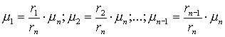 Наличие этих свойств приводит к тому, что при известных элементах одной строки матрицы А легко определить элементы всех других строк. Если известна r-я строка, т.е. элементы акj, k