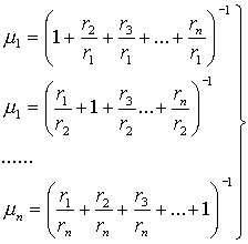 Используя соотношение (13) легко определить степени принадлежности всех элементов универсального множества через степени принадлежности опорного элемента.