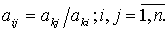 б) элементы, которые симметричны относительно главной диагонали, связаны зависимостью: аij=1/аji;