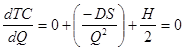Виконуючи диференціювання по Q і прирівнюючи це вираження до нуля, одержимо