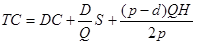 Рівняння (1.1) припускає, що замовлена кількість виробів буде отримана однією партією, однак в практиці часто буває інакше. В багатьох ситуаціях виготовлення виробів, що входять у запас, і використання цього запасу відбуваються одночасно. Це, зокрема відноситься до випадку, коли одна частина виробничої системи виконує функцію постачальника для іншої частини цієї системи, що виступає в ролі споживача. Наприклад, у процесі виконання замовлення на алюмінієві віконні рами одна частина замовлення ще перебуває в стадії виготовлення алюмінієвих заготівель, а інша — у процесі розрізки алюмінієвих заготівель і монтажу, хоча все замовлення на ці заготівлі ще не виконаний. Крім того компанії все частіше переходять до довгострокових угод з постачальниками. Відповідно до цих угод єдине замовлення може охоплювати потребу у виробах і матеріалах, розраховану на півроку чи на рік вперед, а постачальник виконує свої поставки щотижня (іноді навіть чаші). Якщо позначити незмінну денну (тижневу) потребу в готовій продукції через d , названу нормою споживання, а денну (тижневу) виробничу потужність процесу виготовлення даної продукції через р , названу нормою виробництва, то можна одержати наступне рівняння сумарних витрат:
