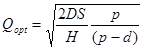Потім для розробки моделі керування запасами необхідно визначити розмір замовлення Qopt при якій сумарні витрати мінімальні. Для знаходження крапки мінімальних витрат візьмемо похідну від сумарних річних витрат по Q і дорівняємо її до нуля.