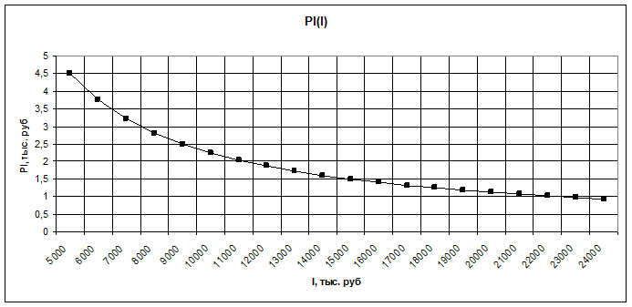 3.9. Построить аналитическое выражение для PI (показатель рентабельности инвестиций).