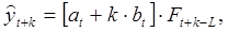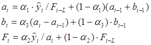 Адаптация к новому значению параметра времени t коэффициентов модели Хольта-Уинтерса производится по формулам