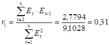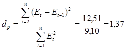 - независимости уровней ряда остатков по d-критерию (критические значения d1 =1,10 и d2 =1,37) и по первому коэффициенту автокорреляции при критическом значении r1 =0,32;