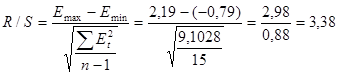 - нормальности распределения остаточной компоненты по R/S-критерию с критическими значениями от 3 до 4,21.